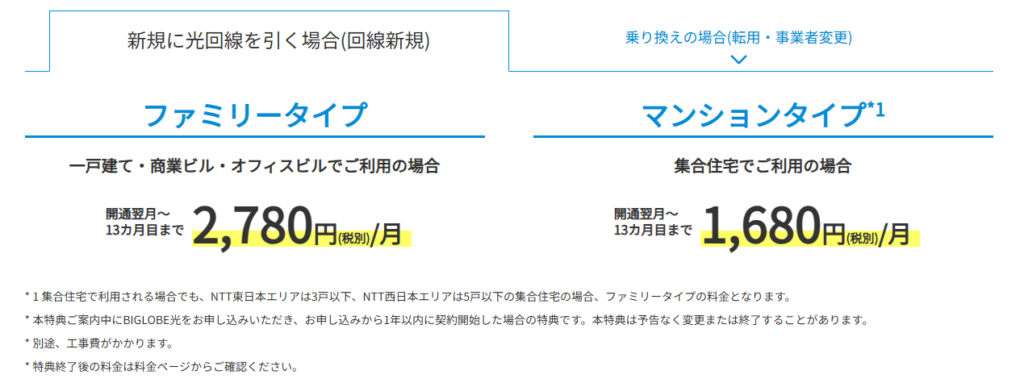 特に「1ギガタイプ」の新規回線をご契約の場合、以下の破格の特典が適用されます。